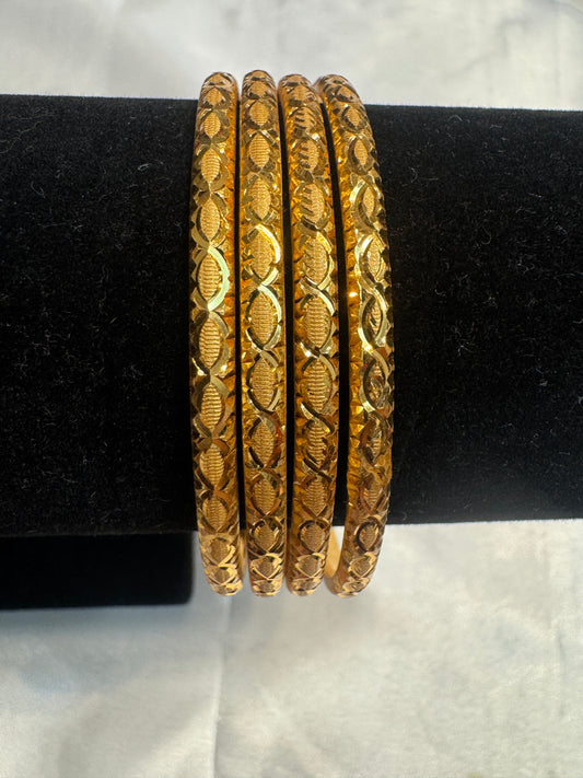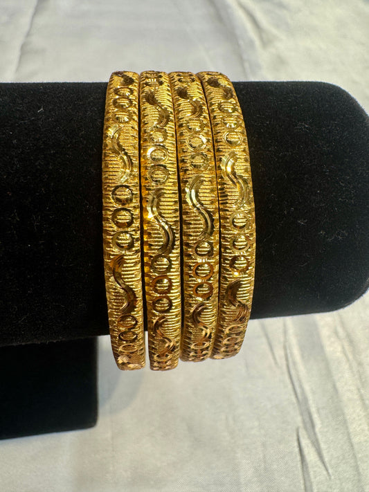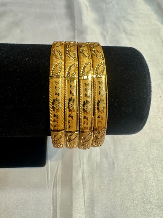 Amazing Gold Plated Bangles With Leaf And Flowers Design