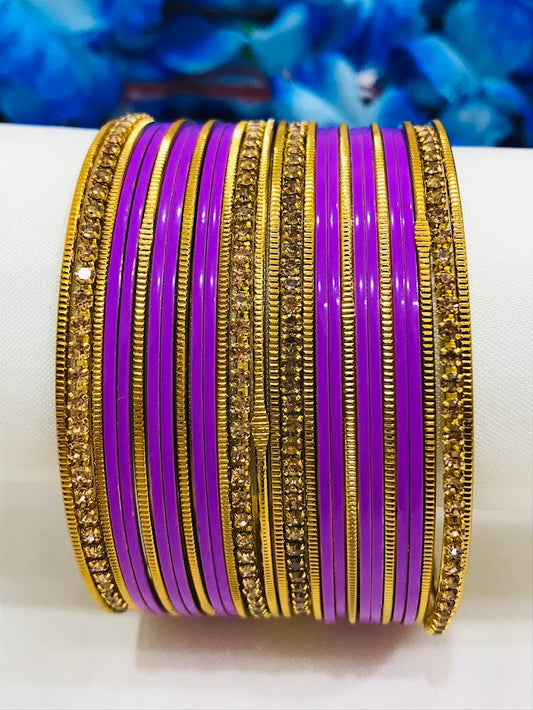 Exquisite Purple Color Party Wear Stone Designed Metal Bangles For Women