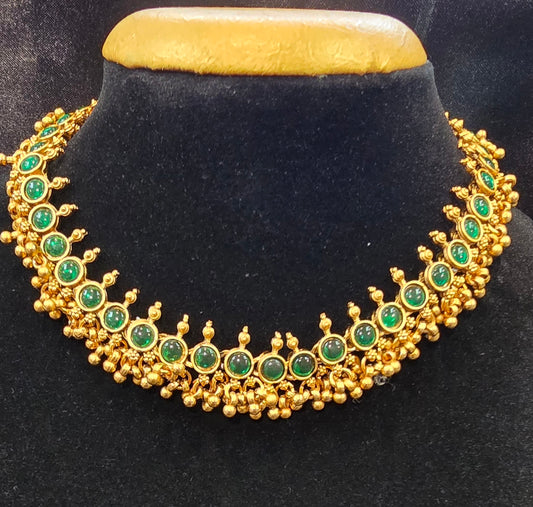 Stunning Green Color Stone Gold Plated Necklace With Earrings Set