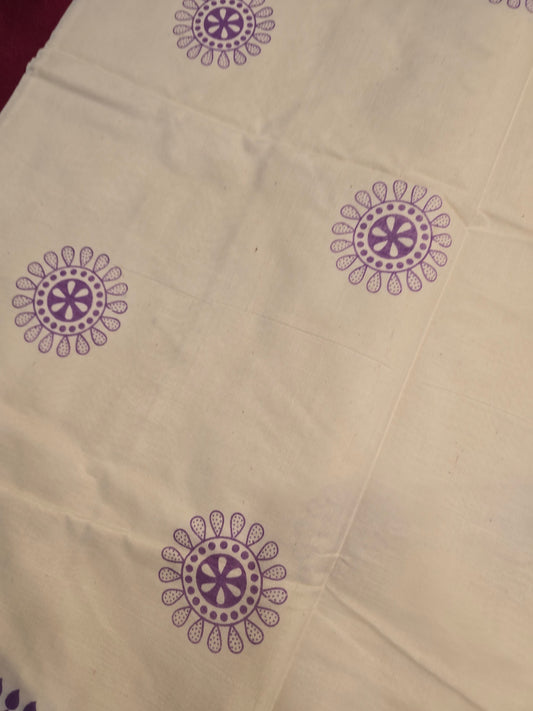 Attractive Kerala Kasavu Cotton Saree With Purple Design