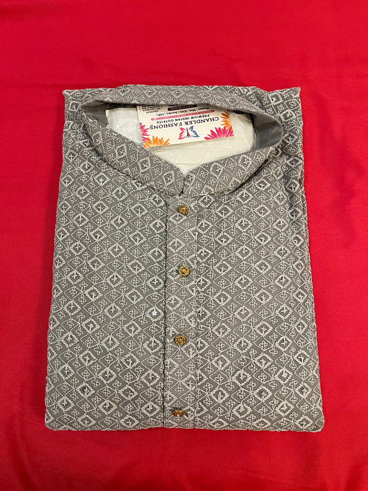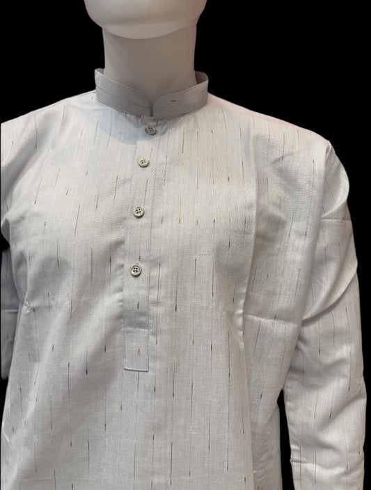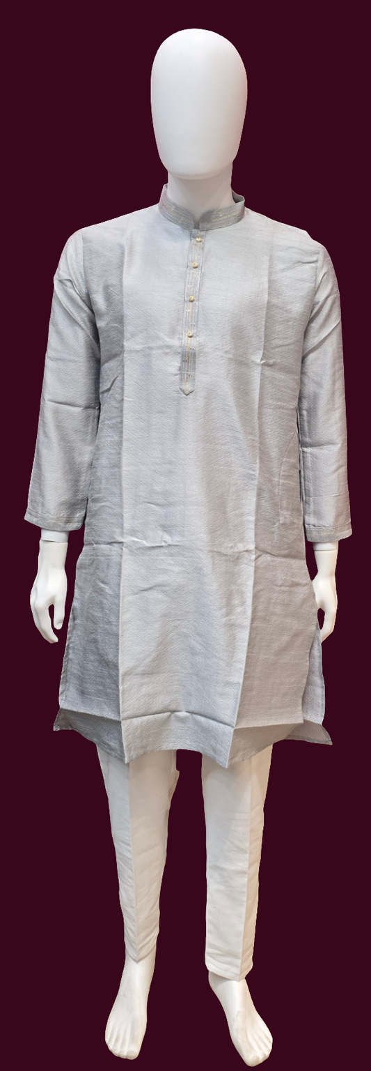 Appealing Silver Color Jacquard Men’s Kurta With Pajama Pants