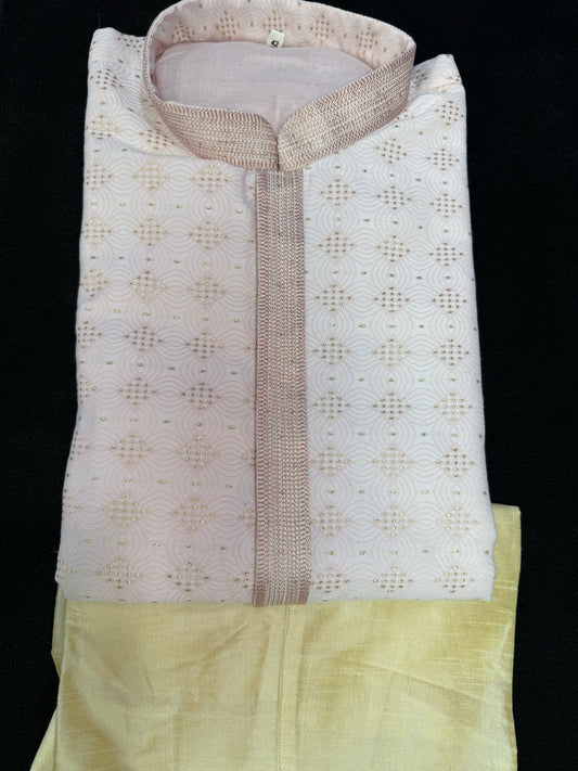 Attractive Light Pink Color Brocade Kurta Suit For Men