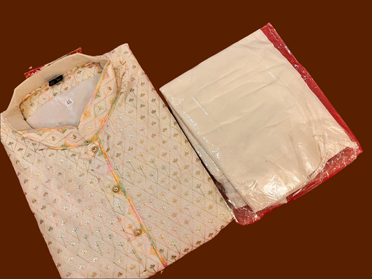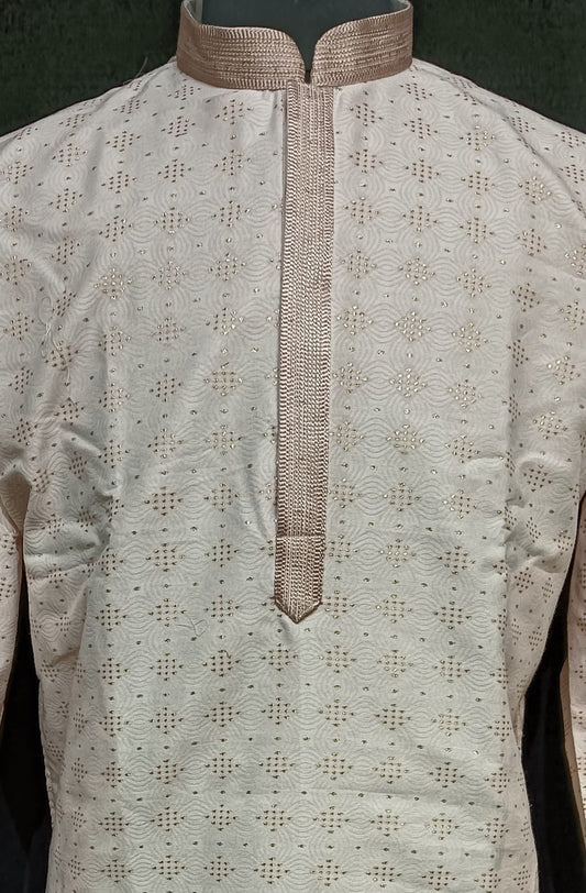 Stunning Cream Color Designer Men's Kurta With Pajama Pant