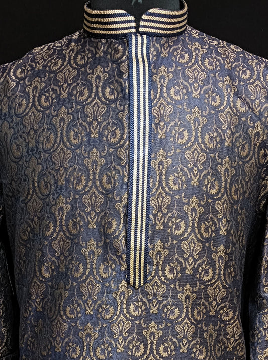 Dazzling Banarasi Brocade Gold Colored Self Design Embroidery Work Kurta Pajama For Men