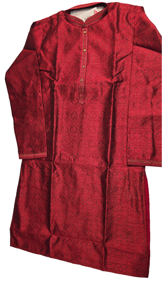 Beautiful Red Colored Jacquard Kurta Set For Men
