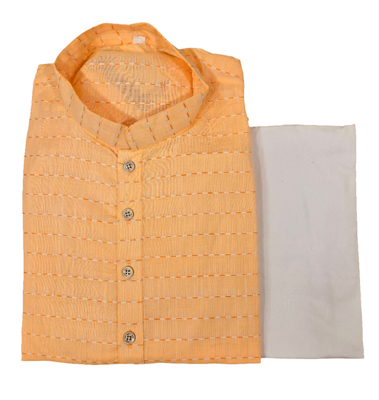 Stunning Light Orange Color Men's Kurta With Pajama Pant