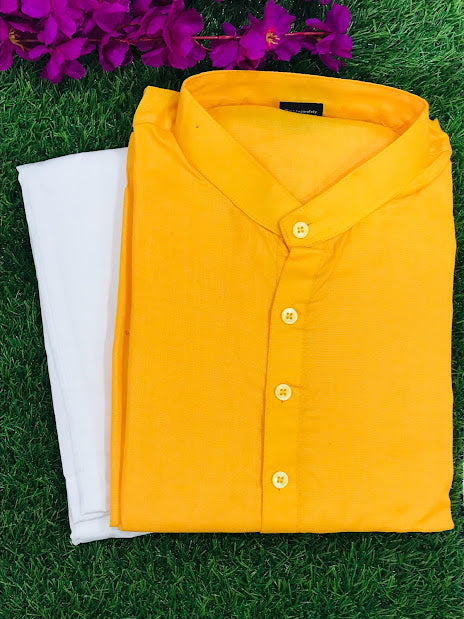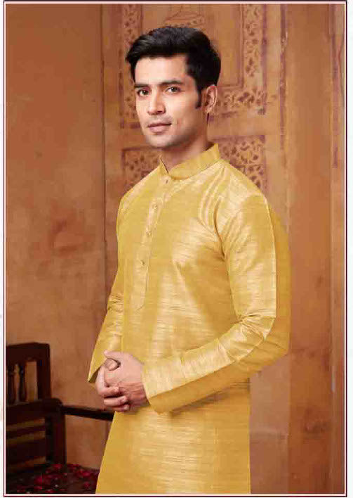 Shine Yellow Color Men's Kurta With Pajama Pant