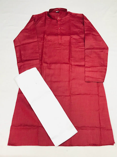 Pleasing Red Color Men's Cotton Kurta With Pajama Pant