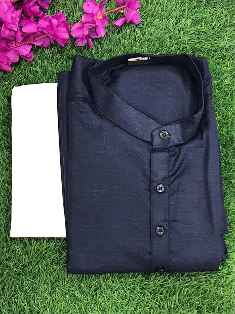 Embroidered Men's Cotton Silk Kurta Pajama Set In Dark Blue