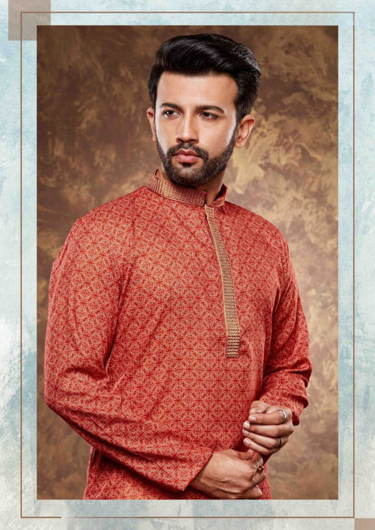Gorgeous Red Color Poly Cotton With Digital Print Kurta For Men