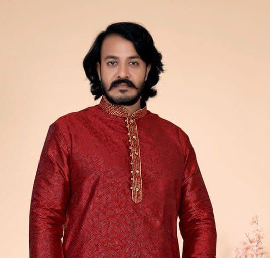 Elegant Traditional Red Color Men's kurta With Pajama Pant