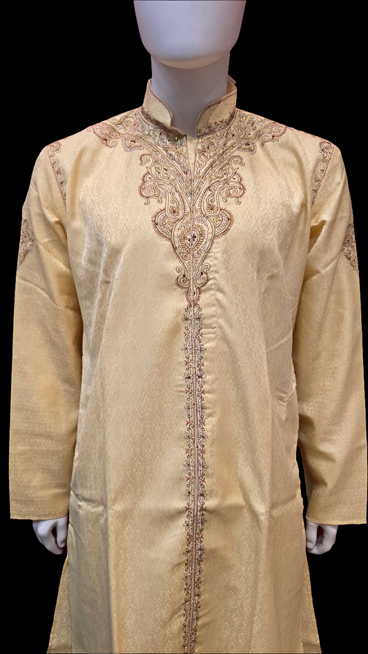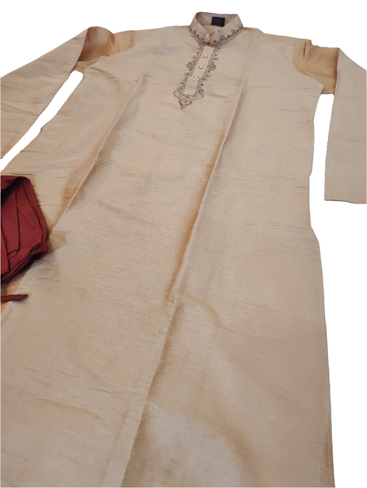 Alluring Beige Color Men's Kurta With Embroidery Work
