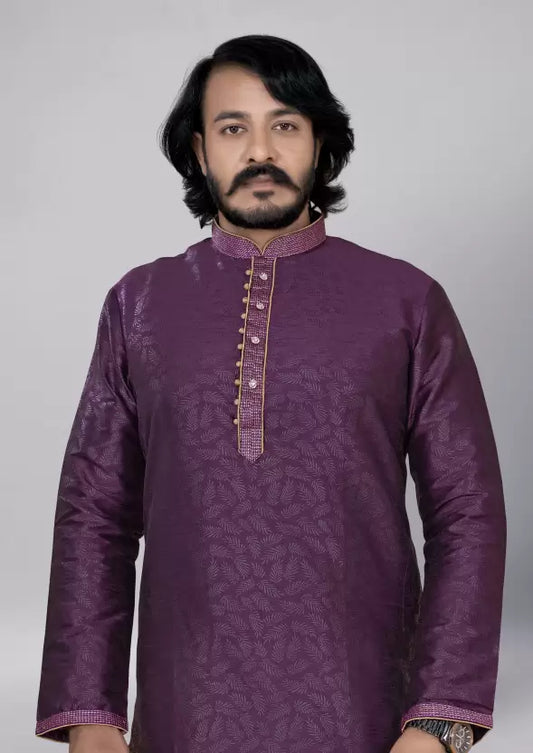 Attractive Traditional Purple Color Men's Kurta With Pajama Pant