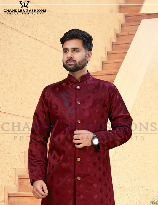 Attractive Maroon Color Silk Kurta With Embroidery Work And Cotton Pajama Set For Men