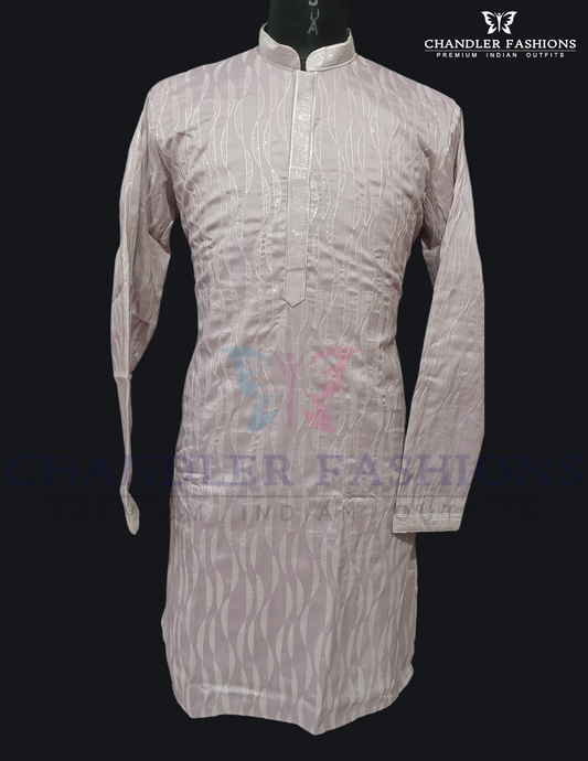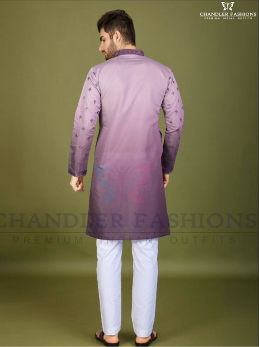 Charming Light Purple Color Lace And Thread Work Kurta With Pajama For Men