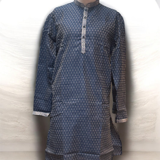 Attractive Dark Blue Color Raw Silk With Embroidery Work Kurta Suits For Men