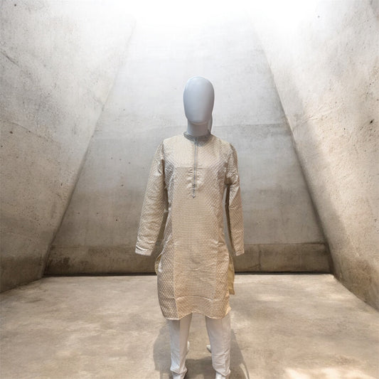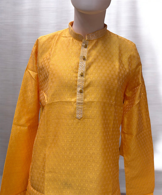 Attractive Light Yellow Color Raw Silk With Self Design Kurta Suits For Men