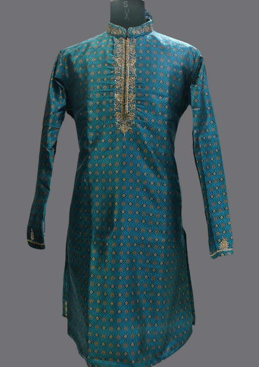Stunning Light Blue Color Zardozi handwork Kurta With Pajama For Men