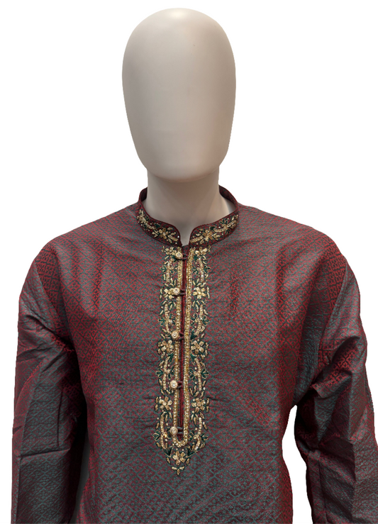 Elegant Maroon Color Men's Kurta And Pajama With Featuring Pure Zardozi Embroidery Work