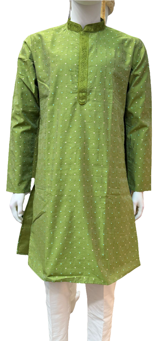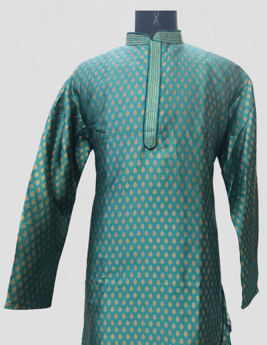 Magnificent Green Color Soft Brocade Men's Kurta And Pajama