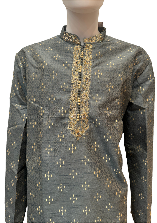 Pretty Gray Color Pure Zardozi handwork Kurta With Pajama For Men