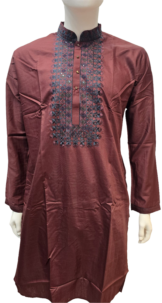 Wounderful Dark Maroon Color Silk With Neck Work Kurta Pajama Pant For Men