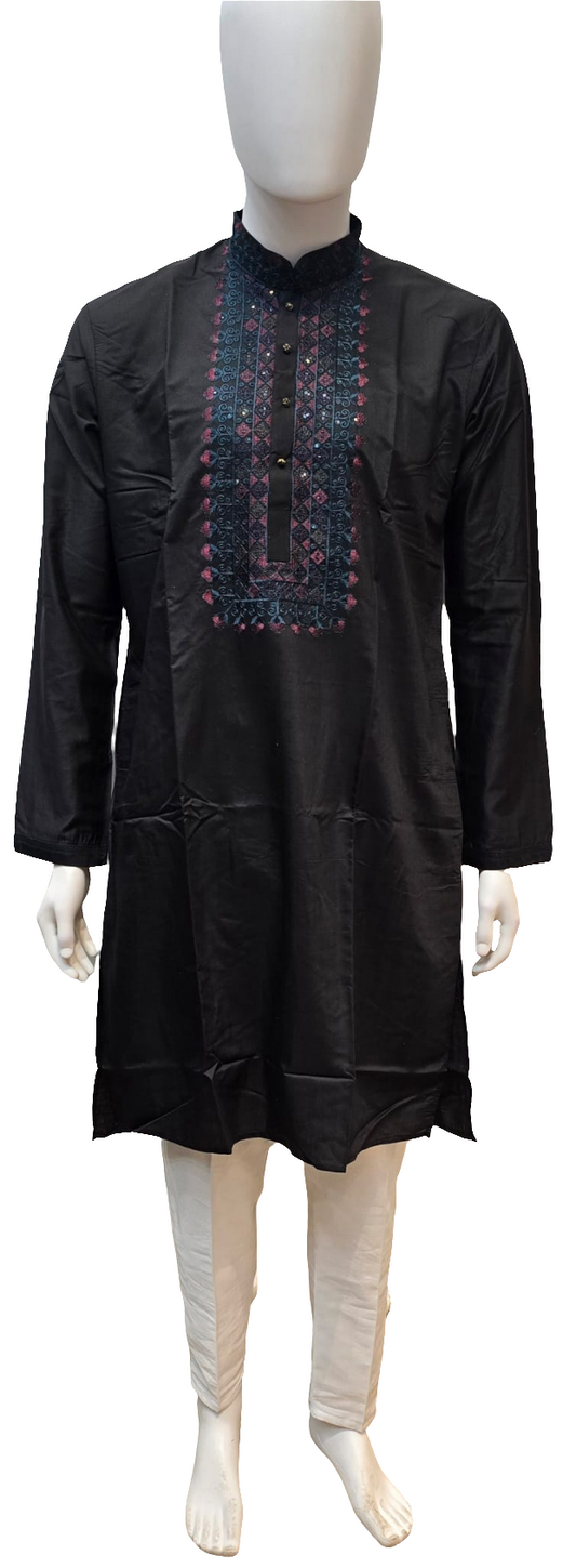 Alluring Black Color Hand Work Zardozi Embroidery Brocade Kurta With Pajama Pant For Men