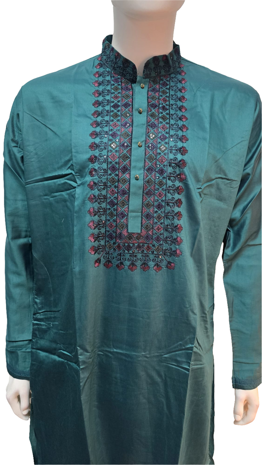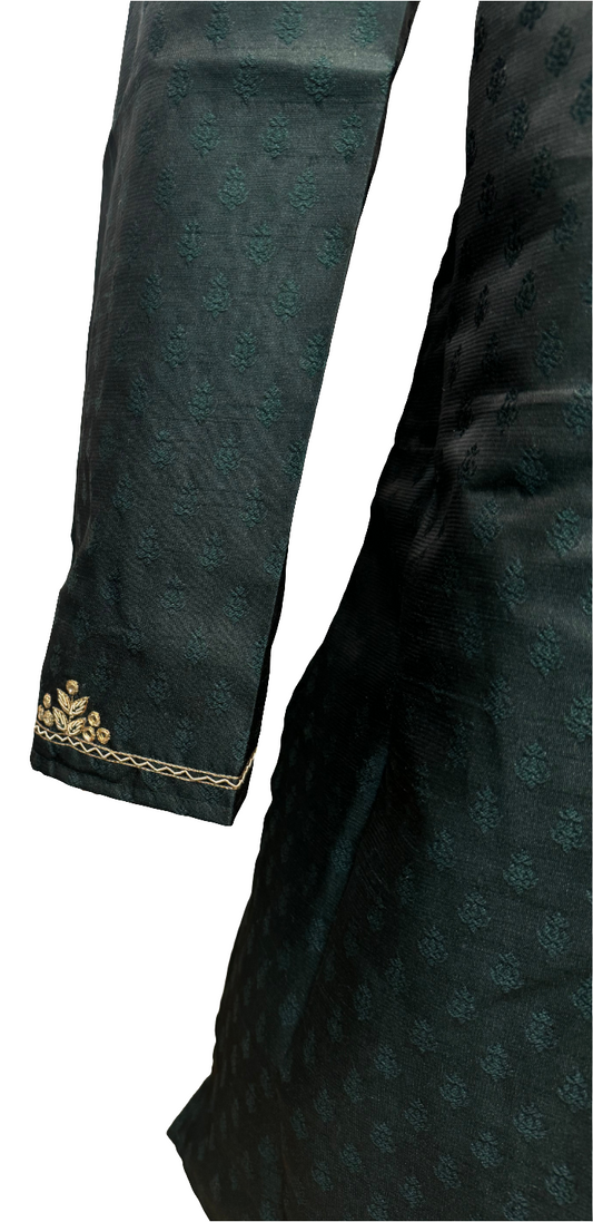 Wonderful Green Color Pure Zardozi Embroidered handwork Kurta With Pajama For Men