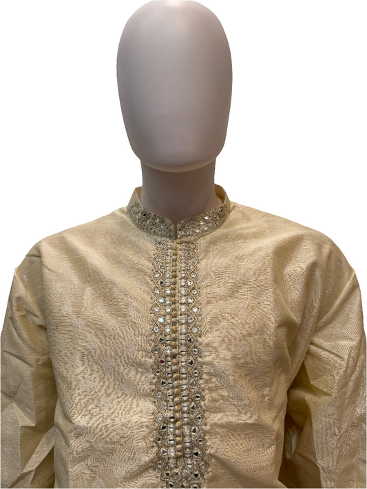 Pretty Brocade Cream Color Zardozi Embroidered handwork Men's Kurta With Pajama