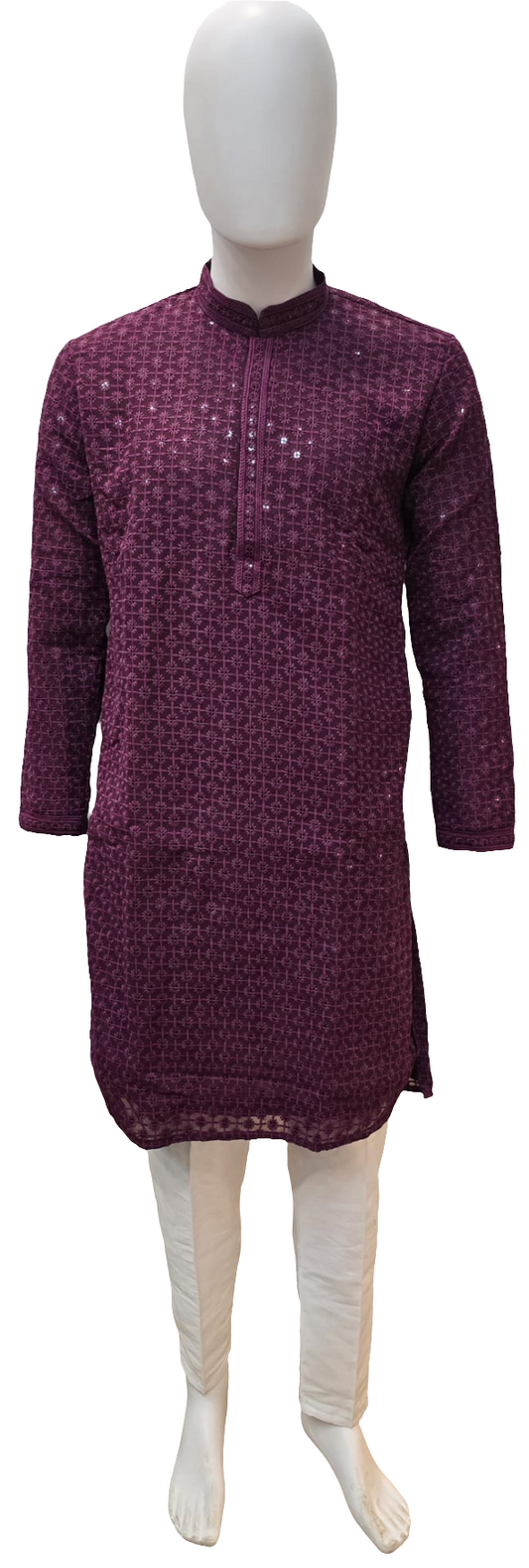 Alluring Purple Color Rayon Embroidered Kurta With Pajama For Men