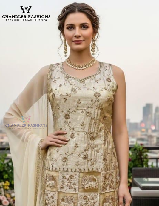 Ravishing Ivory Color Zari Embroidery Work Palazzo Suits For Women