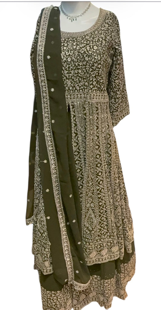 Elegant Green Color Georgette With Heavy Embroidery Work Anarkali Suits For Women