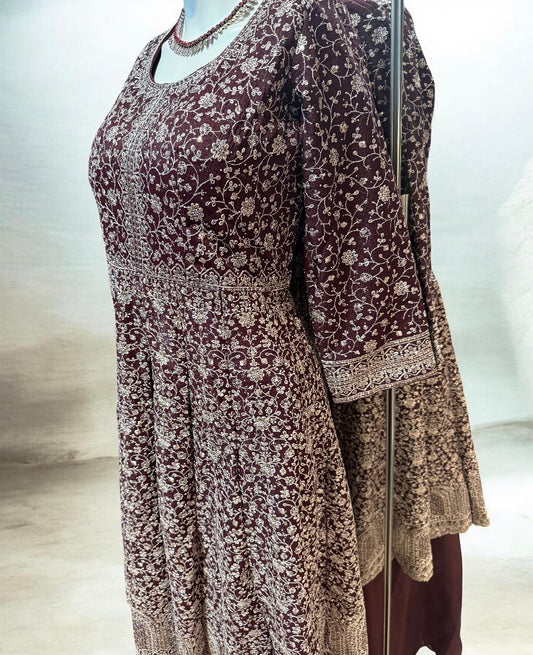 Attractive Brown Color Georgette With Heavy Embroidery Work Anarkali Suits For Women