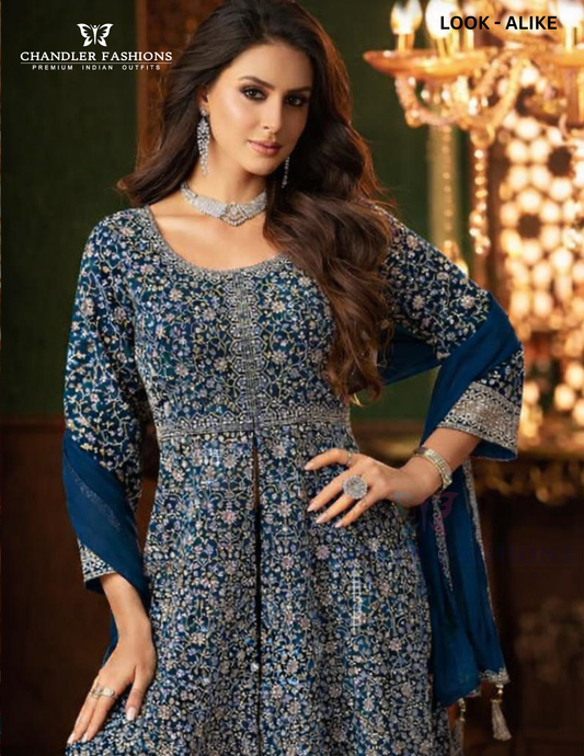 Gorgeous Teal Blue Color Georgette With Heavy Embroidery Work Palazzo Suits With Dupatta