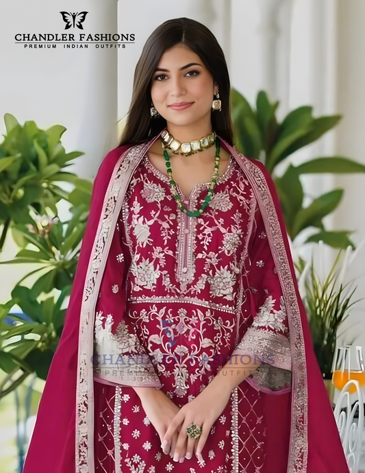 Beautiful Rani Pink Color Chinon With Embroidery Work Salwar Suits For Women