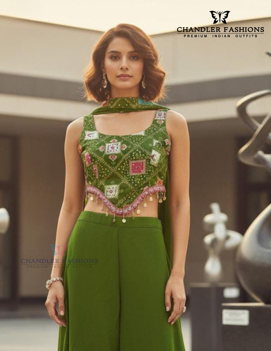 Amazing Green Color Georgette With Thread Embroidery And Sequins Work Palazzo Suit For Women
