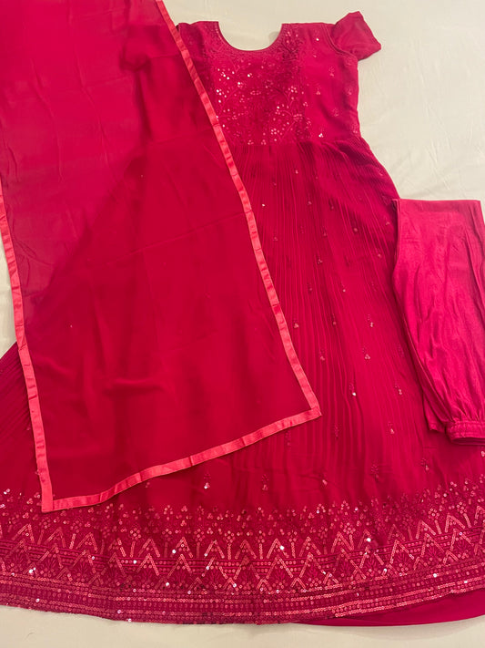 Georgeous Bright Pink Colored Salwar Suit With Bottom And Net Dupatta