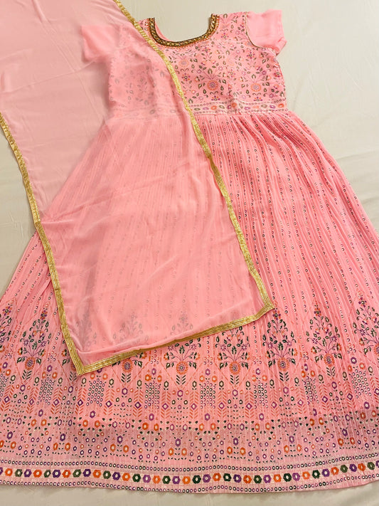Beautiful Light Pink Colored Heavy Embroidery Georgette Palazzo Suit