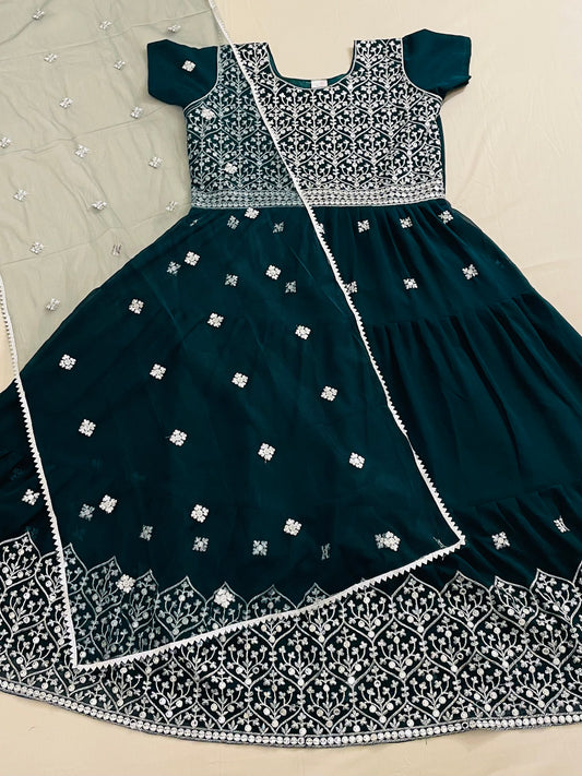 Fabulous Green Color Georgette Anarkali Suit With Embroidery Work For Women