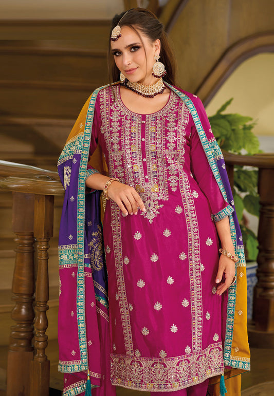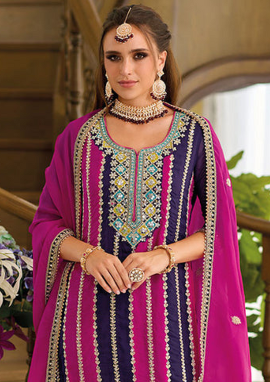 Appealing Violet Colored Heavy Chinon Embroidery Work Salwar Suits For Women