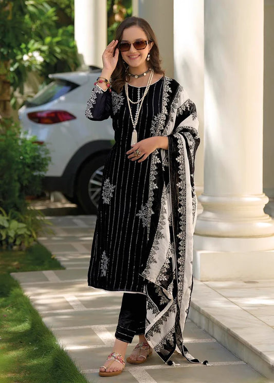 Graceful Black Color Heavy Organza With Fancy Embroidery Salwar Suits And Dupatta