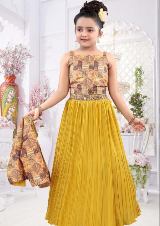 Attractive Yellow Colored Heavy Faux Georgette Embroidered Sequins Work Gown For Girls