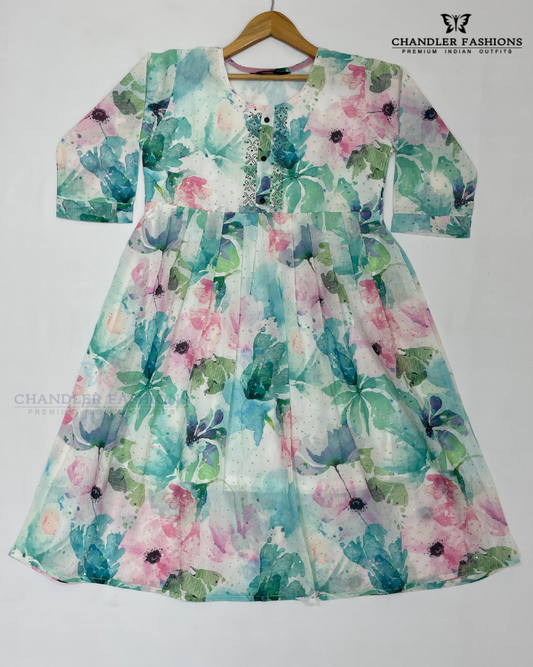Charming Multicolor Georgette Kurti With Stone Work For Girls