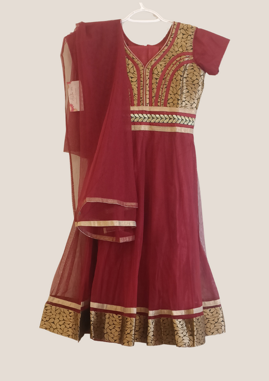 Beautiful Maroon Rayon Long Gown With Chikan Kari Work For Kids
