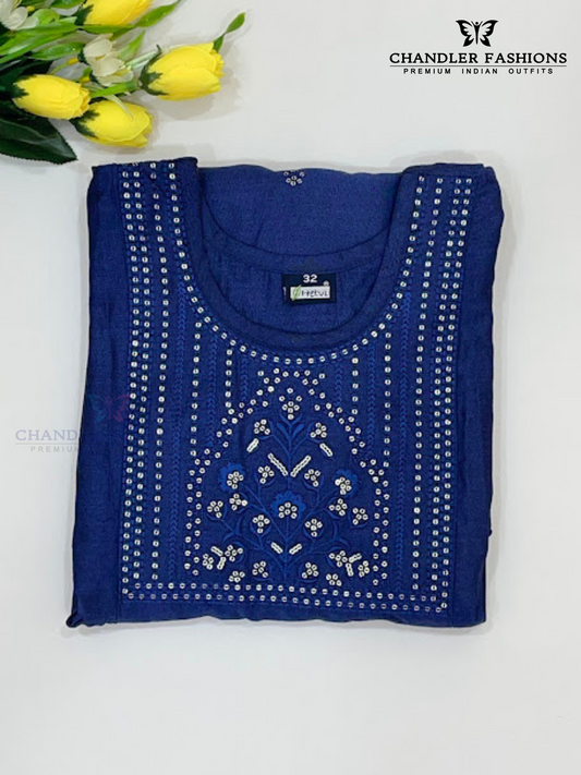 Beautiful Dark Blue Color Kurti Suits With Embroidery Work For Girls