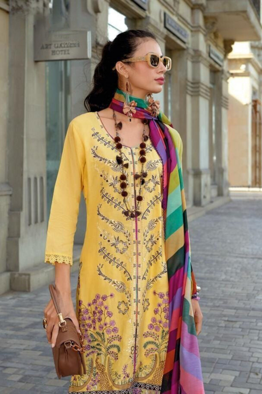 Elegant Yellow Color Cotton Embroidered Salwar Suits With Dupatta Set