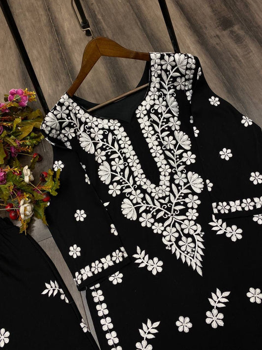 Elegant Black Color Rayon Sharara Suits With Embroidery Work For Women