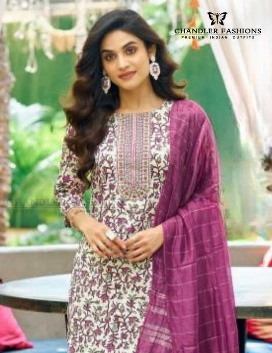 Beautiful Off White Color Cotton Kurti And Palozzo Suits For Women