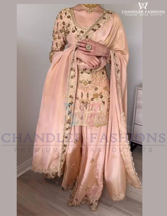 Charming Pink Color Sequins And Embroidery Work Palazzo Suits With Dupatta For Women