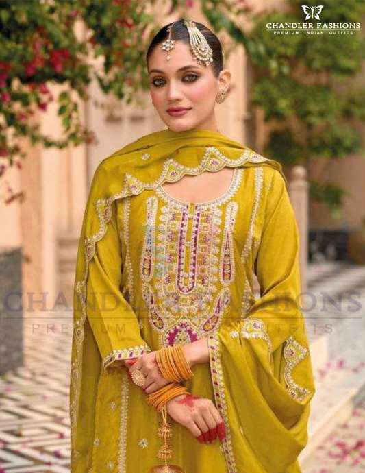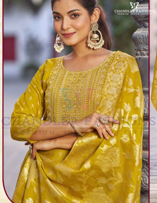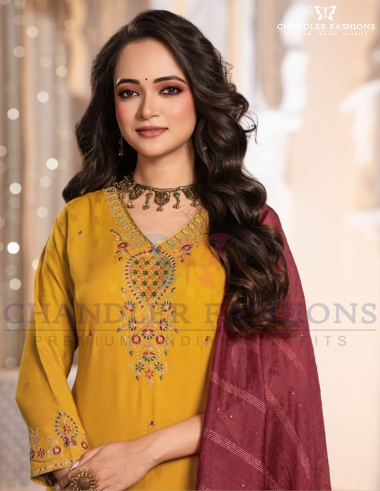 Beautiful Yellow Color Embroidery Work Salwar Suits With Dupatta